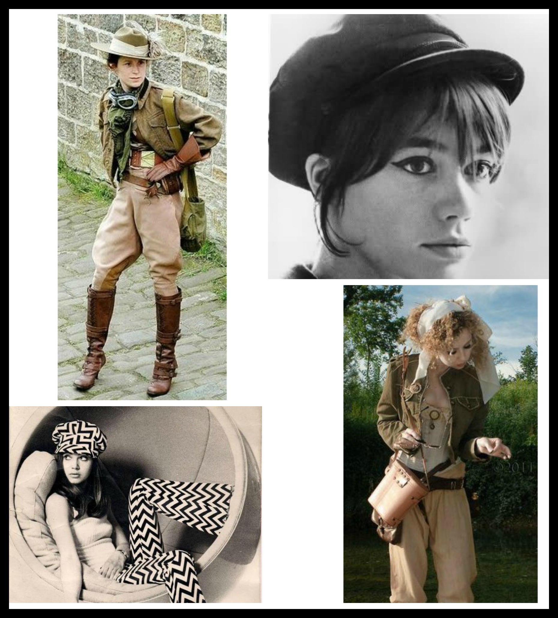 Your Soul wears an outfit with tan and brown colors, matching the colors of the lions. It is part safari outfit, part Steampunk outfit. The jacket is fabulous! Your Celestial Hat is not what you’d expect to go with the outfit. It is a mod, 1960’s Hat, similar to the style of the hats in the black and white photos below. The Hat is tan, matching the outfit. This is one of my favorite Hats! It matches the outfit perfectly, giving an overall modern safari look.