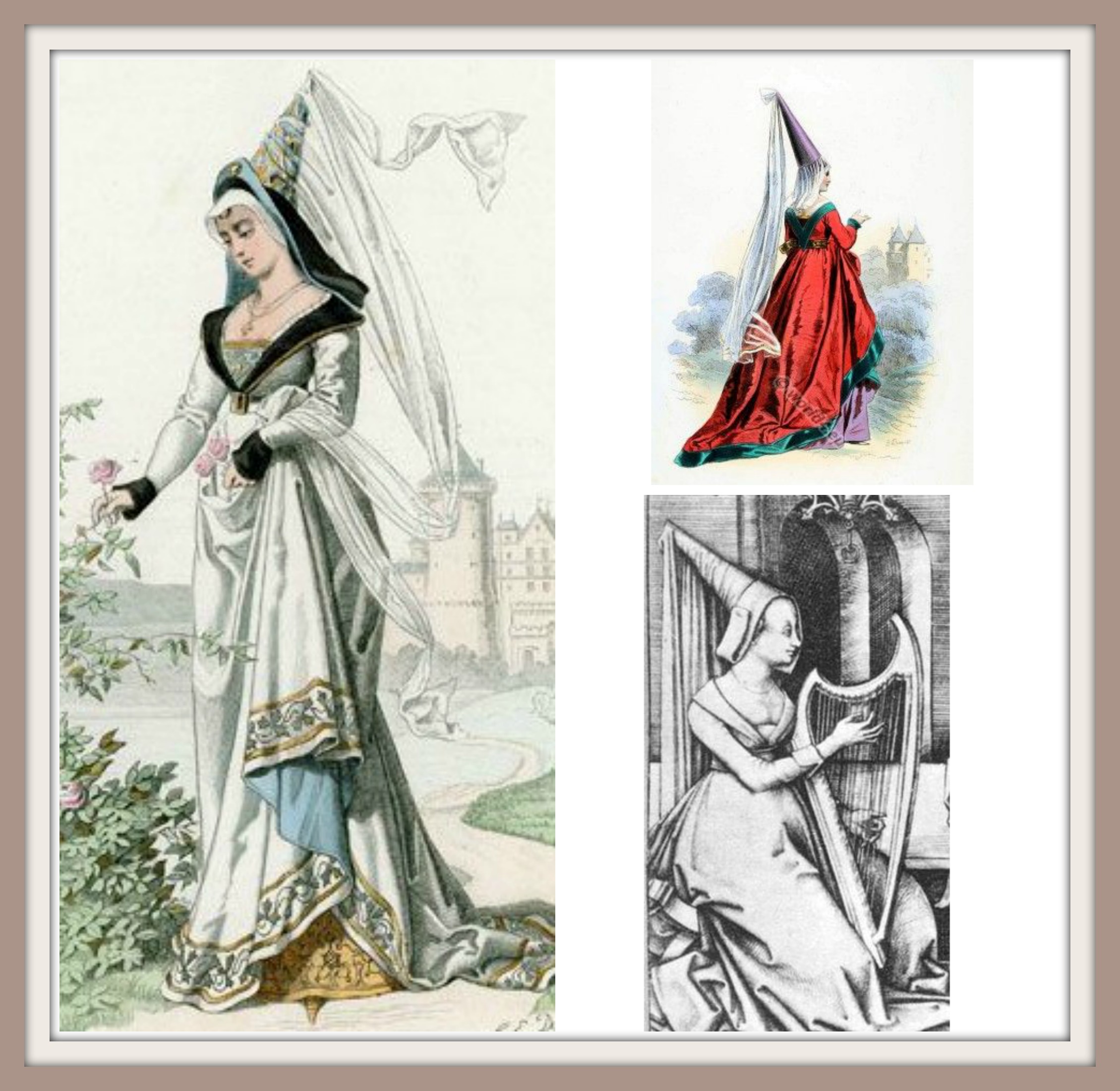 You approached with your hands outstretched, playing an “air” piano, or harpsicord. You danced and played to music only you could hear. Your clothing is medieval. The dress is beautiful with soft colors and layers of undulating fabric. The dress flows and sways with the melodies as you dance and play your instruments. The Hat is called a hennin. Hennins were all the rage for high-class ladies in the second half of the 1400’s. The Hat has a sheer veil hanging from it and although the Hat is tall, it suits your outfit and perfectly complements your Soul.